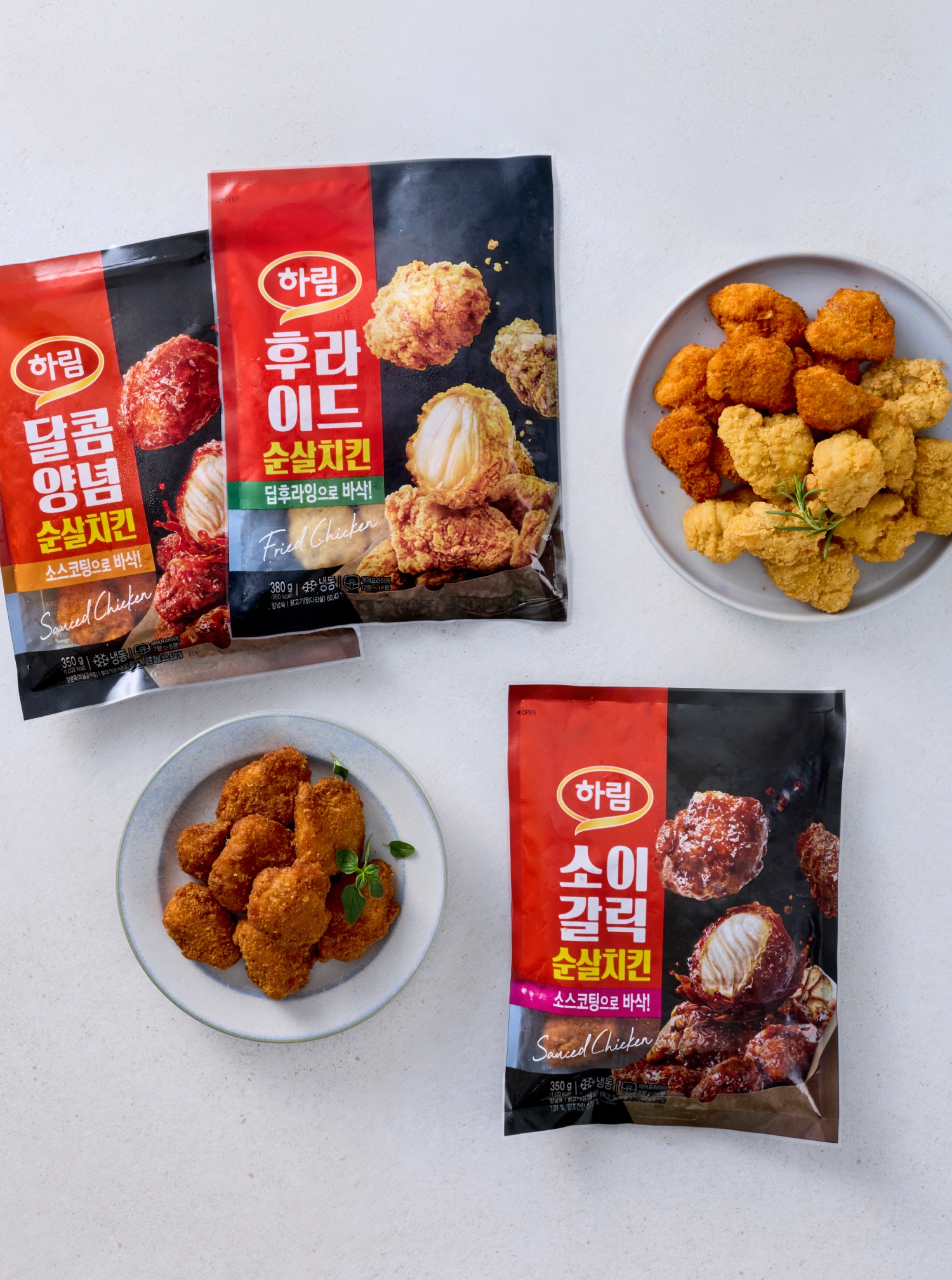 [소비기한 안내] [하림] 달콤양념 순살치킨 350g은 소비기한이 2026년 04월 08일까지인 상품이 배송됩니다. [하림] 후라이드 순살치킨 380g은 소비기한이 2026년 07월 26일까지인 상품이 배송됩니다.