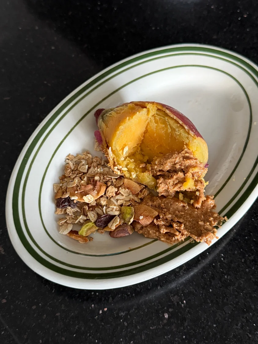 요즘 햇고구마가 넘 맛있어서 매일 먹다가 꿀조합을 찾았습니다. 고구마 + 아몬드버터 + 그래놀라 짱맛이구요. 고구마 + 마스카포네치즈 요 조합도 강추에요