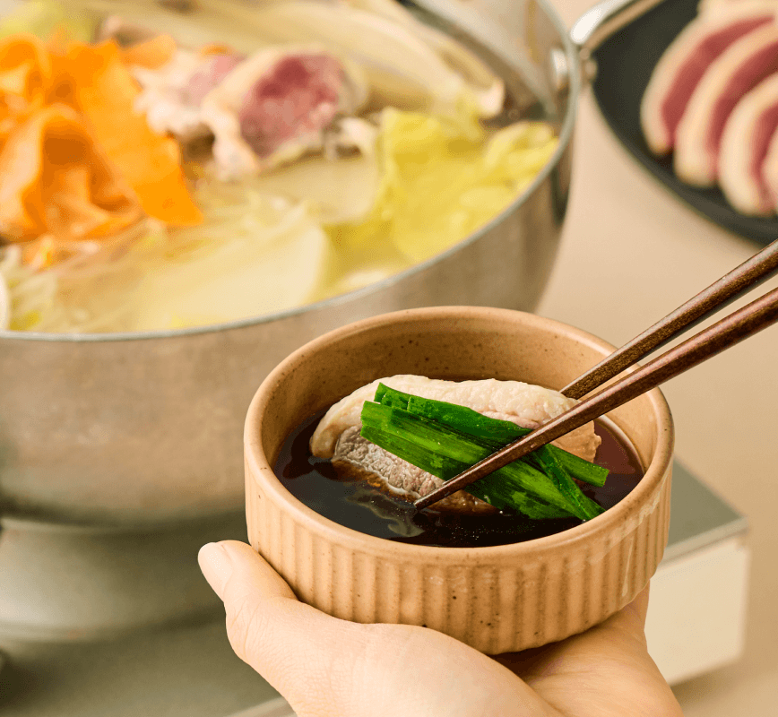오늘 도압해 고소함이 절정인 오리고기. 결이 촉촉하고 육향이 깔끔해요. 가볍게 데친 오리고기의 고소한 육즙과 맑은 국물의 담백한 풍미를 즐겨보세요.